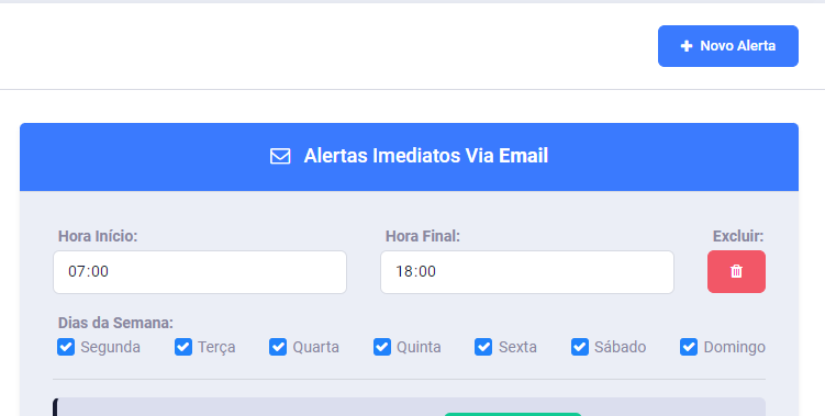Dias da semana - seleção dos dias da semana em que deseja receber os boletins