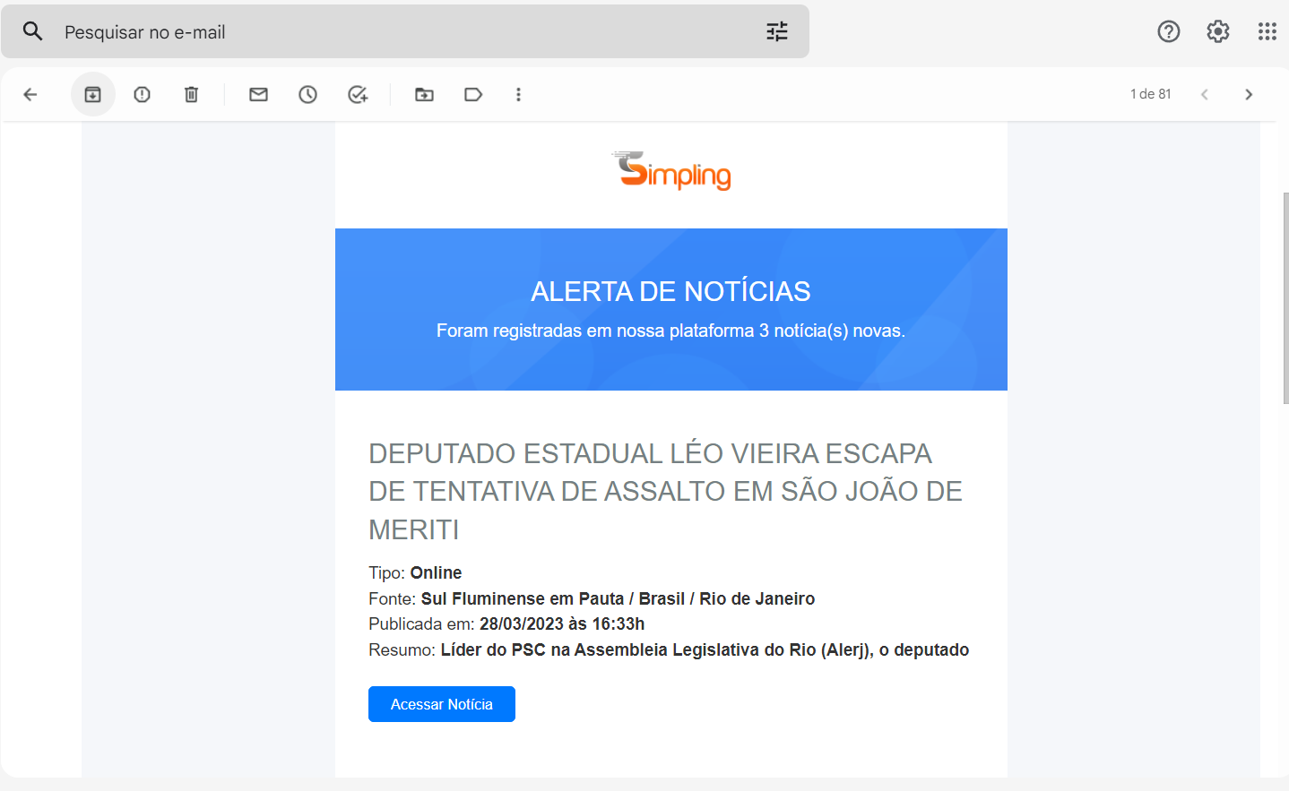 As notícias são dispostas em lista, com um botão de acessar notícia que direciona para a notícia capturada pela plataforma: