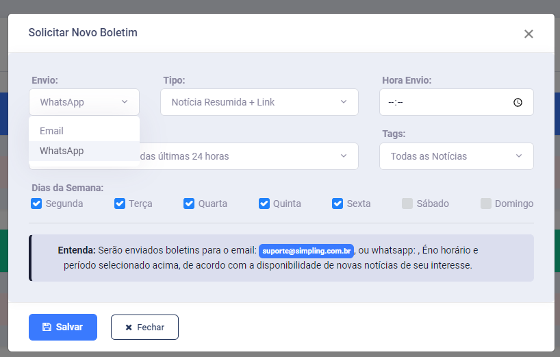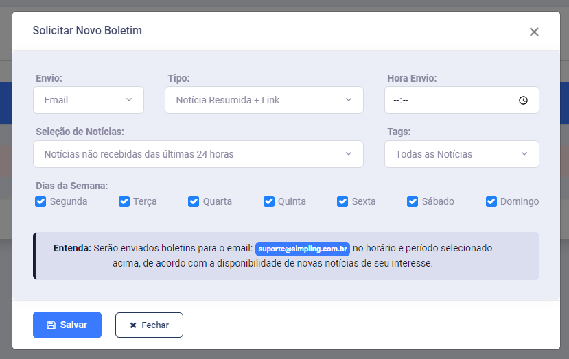 Boletins de notícias reúnem as notícias capturadas das últimas 6 horas, 12 horas ou 24 horas.